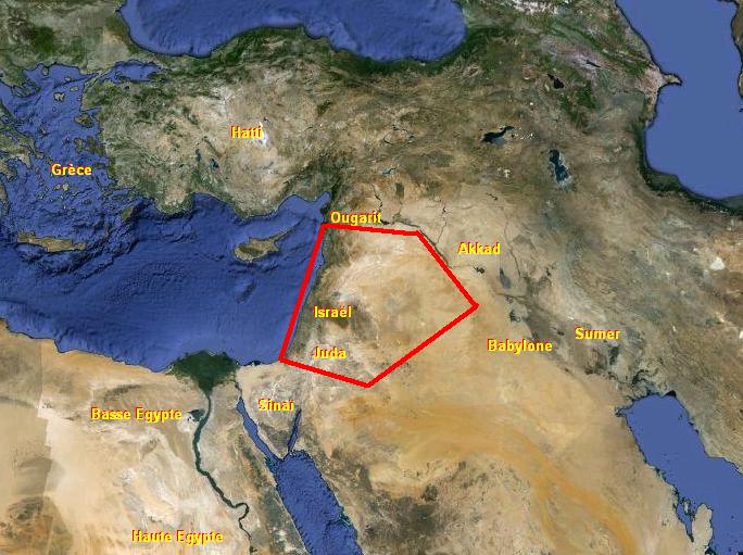 Lors de la conquête de Canaan, la Bible précise où elle situe le territoire hittite (Josué 1:4). Selon elle, cela couvirait tout le Levant, c'est-à-dire le territoire situé entre la péninsule du Sinaï et le désert au sud, l'Euphrate à l'est, la mer Méditéranée à l'ouest. Ougarit se situerait à la frontière nord de ce territoire.