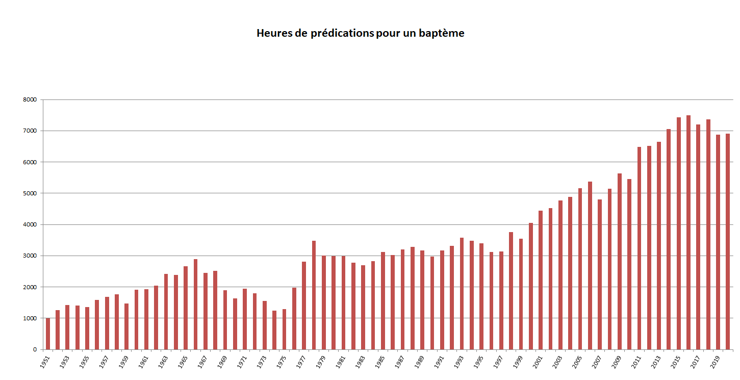d'heures de prédication pour que quelqu'un prenne le baptême.