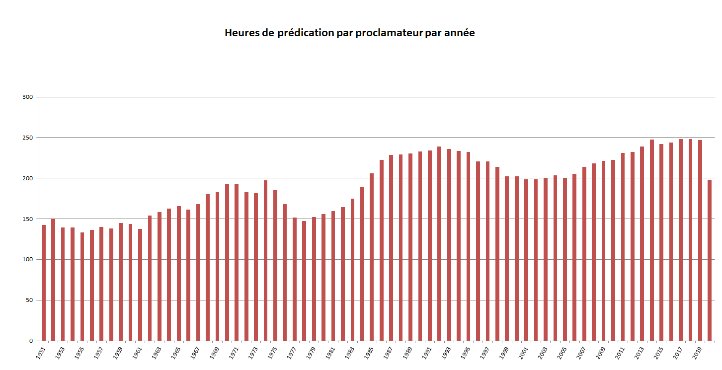 Ce graphique démontre que la moyenne d'heures de prédication est